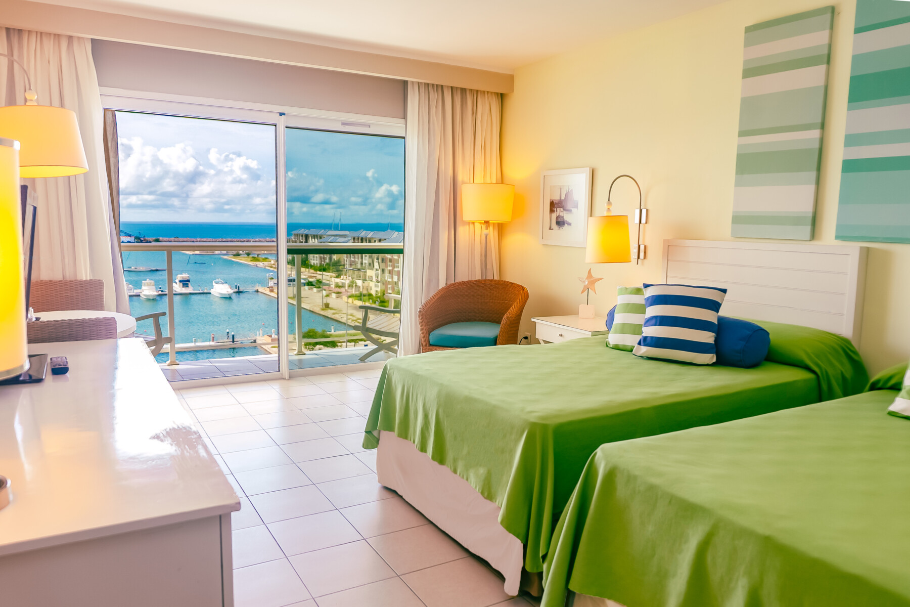 Ubicada en los pisos superiores, dispone de una cama king size o dos camas individuales y ofrece hermosas vistas a la marina, creando el escenario ideal para relajarte y desconectar.