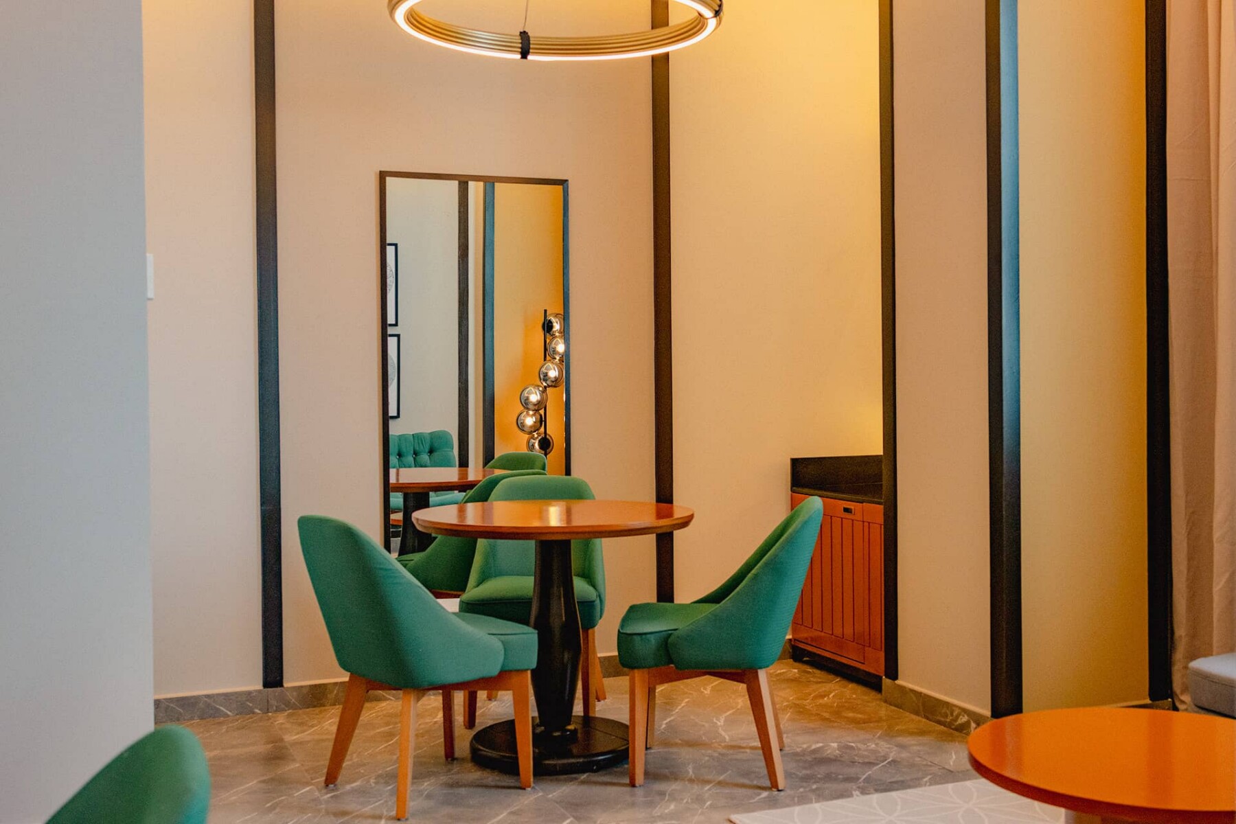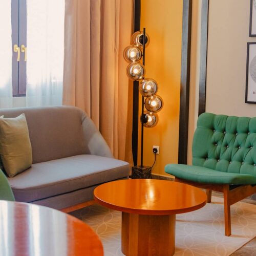 Un área de estar independiente con mesa y sofá proporciona el espacio ideal para relajarse, recibir visitas o trabajar, haciendo de la Executive Suite la opción perfecta para parejas, familias o viajeros de negocios que buscan un confort adicional. Cada detalle ha sido cuidadosamente diseñado para crear un santuario acogedor en el corazón de La Habana Vieja.