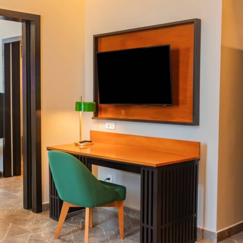 Adéntrese en la elegancia de nuestra Executive Suite de 66 m², un amplio refugio decorado en suaves tonos marrón y verde que combinan a la perfección sofisticación y confort.