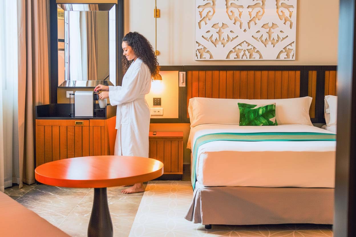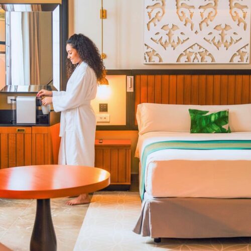 Diseñada como un refugio de tranquilidad en el corazón de La Habana Vieja, esta habitación de 36 m² ofrece un espacio cuidadosamente concebido en el que el confort se une con la elegancia.