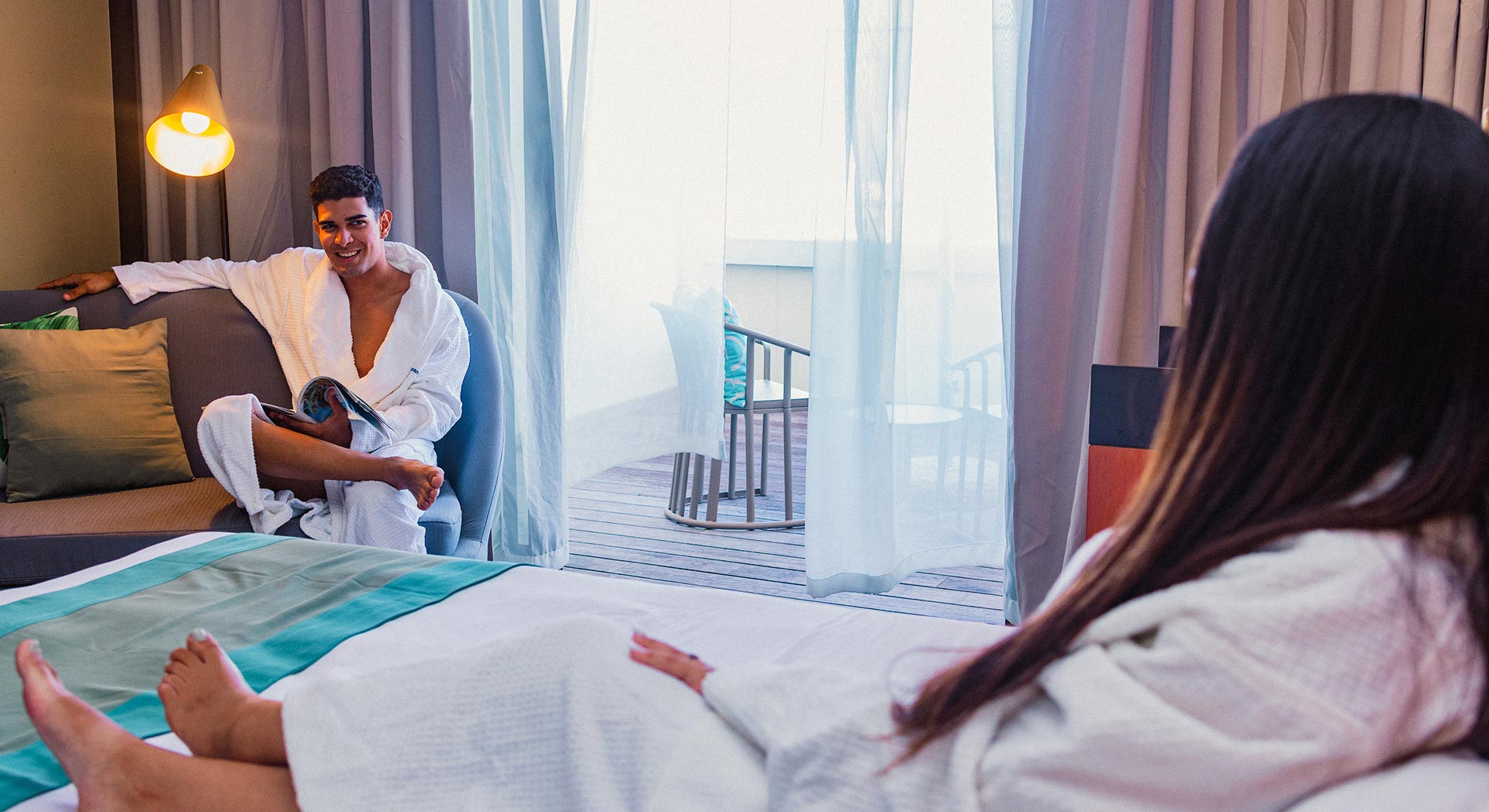 Cuenta con una lujosa cama king size, un elegante sofá, una mesa para el desayuno y modernas comodidades pensadas para el descanso y el bienestar.
