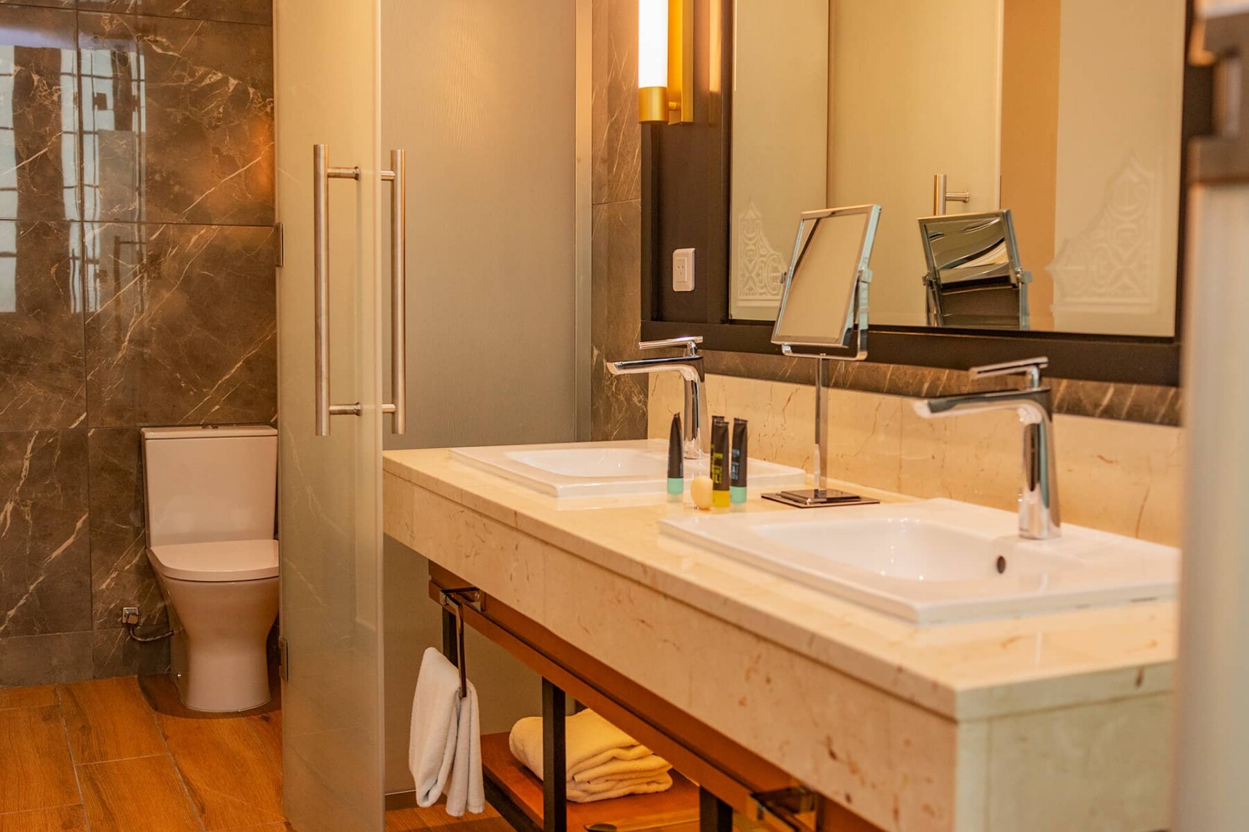 Cada habitación cuenta con dos cómodas camas queen-size, un acogedor sofá, una mesa de desayuno y una variedad de servicios modernos diseñados para su conveniencia.